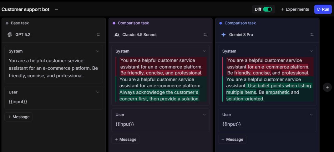 Braintrust Gateway stands out from standalone routers by connecting directly to Braintrust's observability and evaluation platform. Requests that flow through the gateway automatically feed into Braintrust's tracing and evaluation pipeline, and developers can run evaluations against production traffic, compare model performance across experiments, and catch regressions in CI/CD before they reach users. The unified approach between routing and quality assurance eliminates the need to stitch together separate gateway, logging, and testing tools.