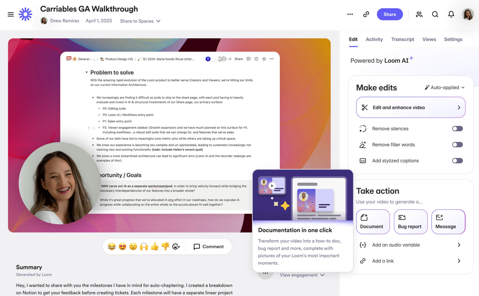 Loom is a video communication platform used by millions of professionals worldwide. With the rise of generative AI, the Loom team saw an opportunity to make video communication more accessible and efficient with new features powered by LLMs, like automatically generated video titles.